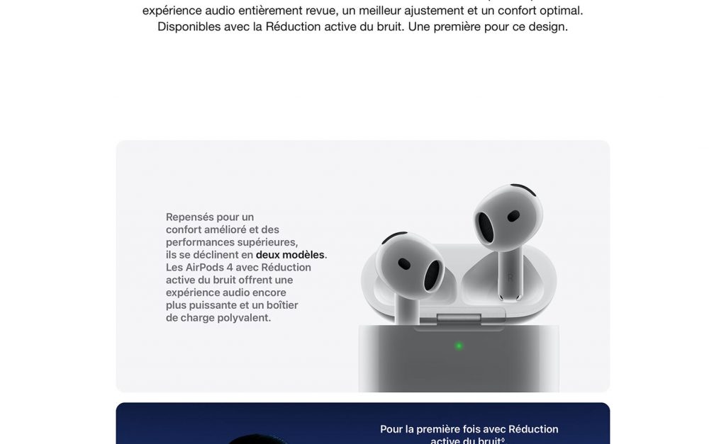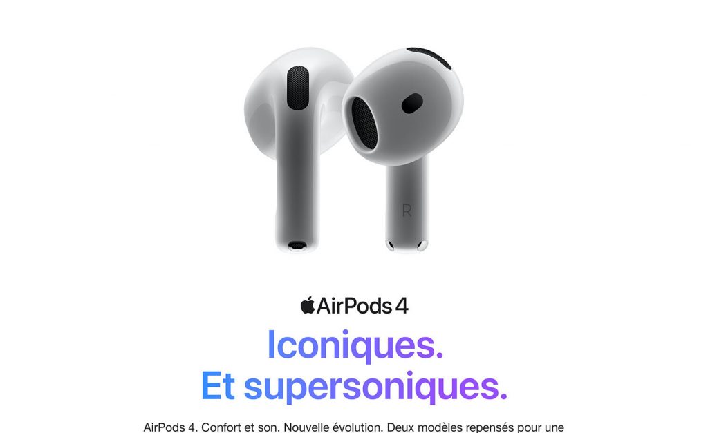 Apple AirPods 4 Écouteurs sans Fil, Casques et écouteurs Bluetooth, Audio Spatial personnalisé, résistance à la Transpiration et l’Eau, boîtier de Charge USB-C, Puce H2, Jusqu’à 24 Heures d’autonomie